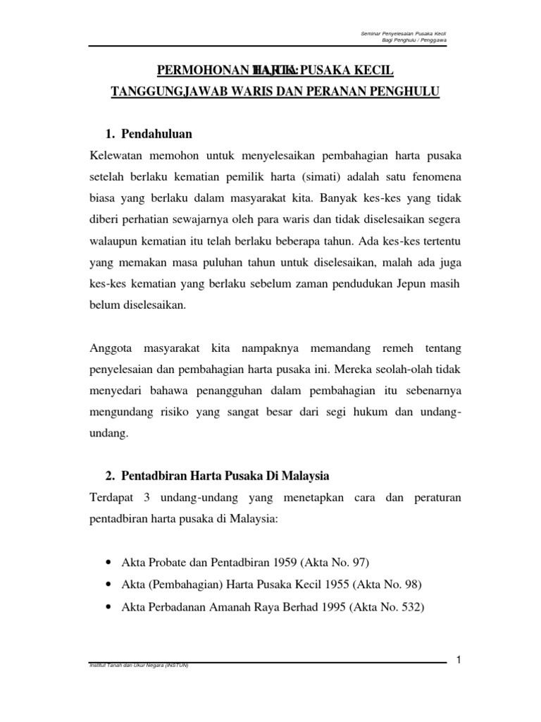 Proses Pengurusan Harta Pusaka Kecil Nota Warisan Pusaka