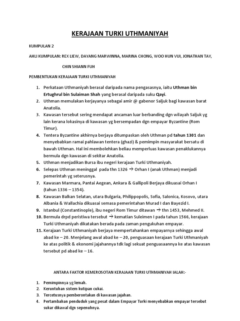 Belajar Sejarah Spm Kerajaan Turki Uthmaniyah
