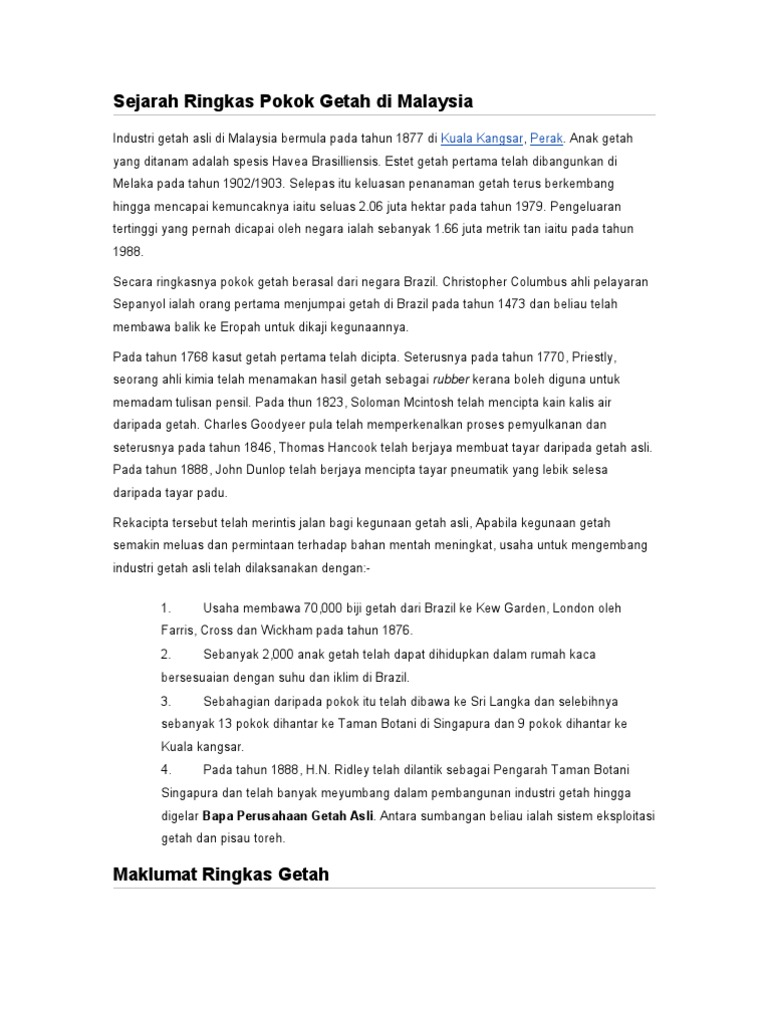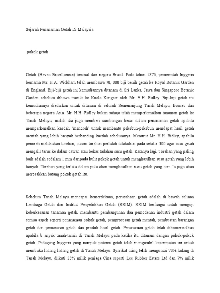 Sejarah Ringkas Pokok Getah Di Malaysia
