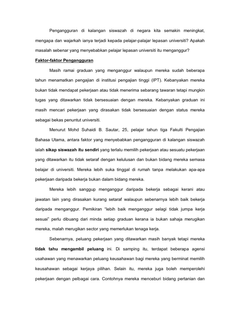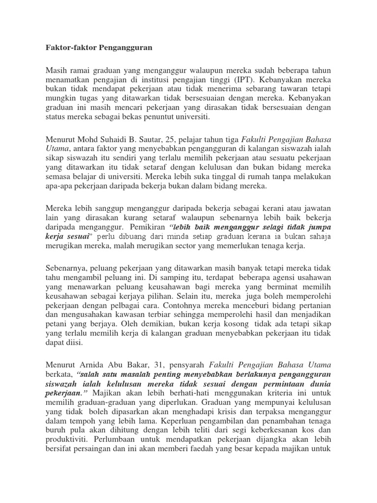 Punca Docx Punca Punca Pengangguran Siswazah Individu Pengalaman Jika Tiada Pengalaman Memang Sukar Untuk Mendapat Pekerjaan Ramai Majiakn Terutama Course Hero