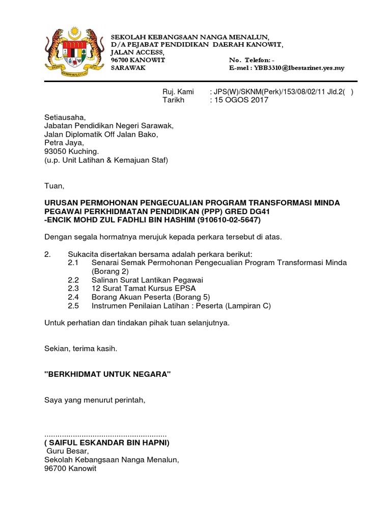 Z Contoh Surat Jpnj Unit Latihan
