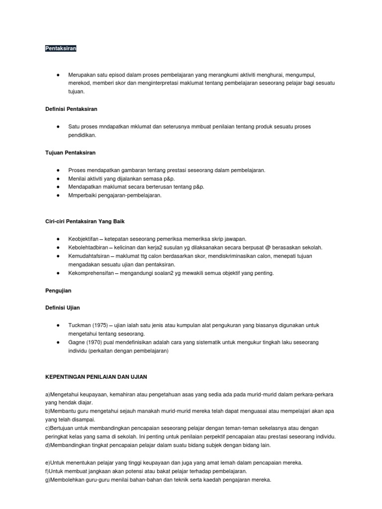 Doc Tajuk 1 Pengertian Dan Konsep Pentaksiran Psv Noel Jagan Academia Edu
