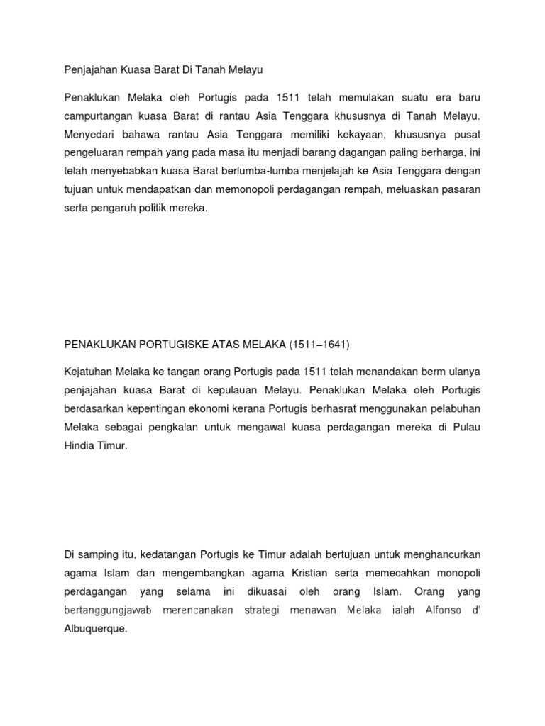 Zaman Penjajahan Portugis Di Tanah Melayu By Solehah Sharin