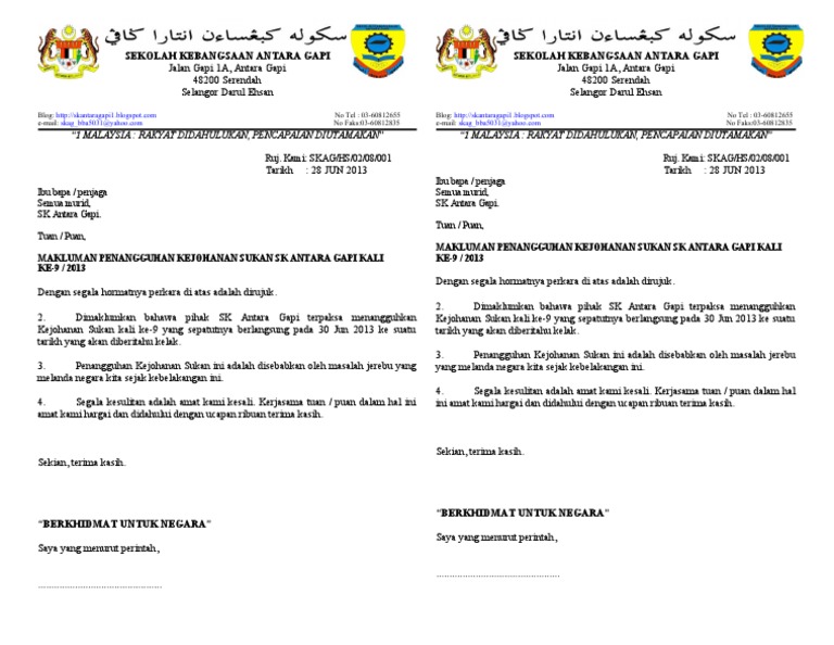 Contoh Surat Rasmi Rayuan Ke Kolej Vokasional Surasmi G