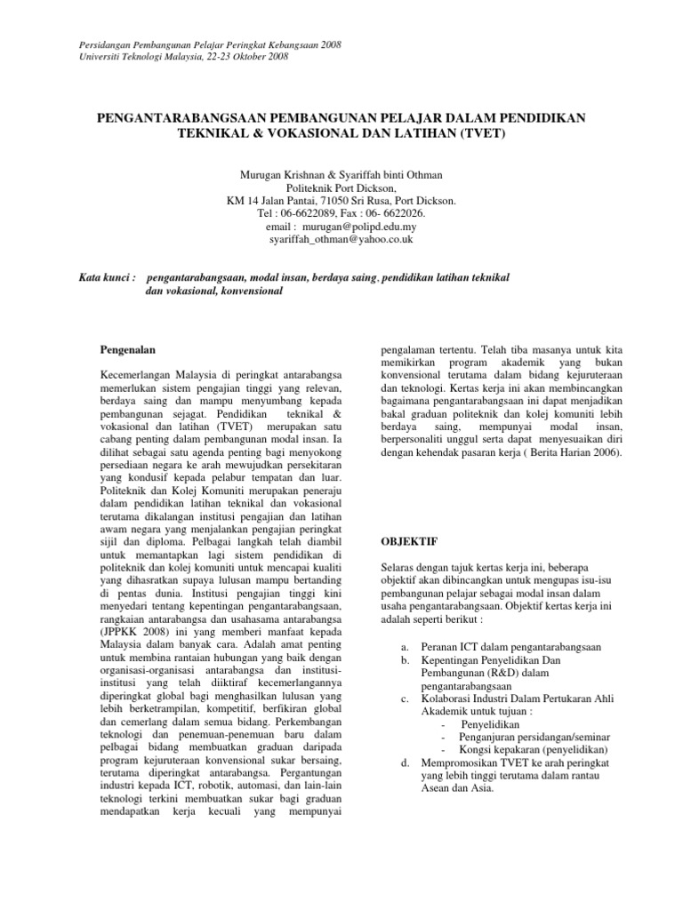 Pdf Cabaran Dan Strategi Pendidikan Teknik Dan Vokasional Ke Arah Mencapai Wawasan 2020 Pdf Dr Ishak Johari Ph D Academia Edu