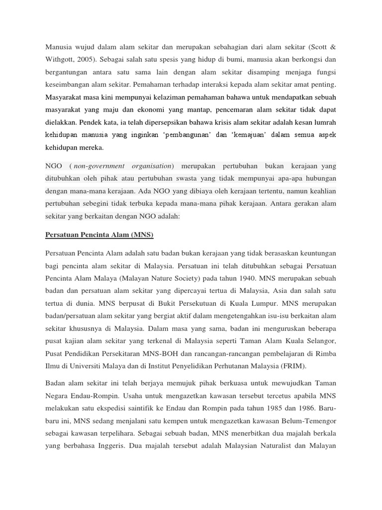 Peranan Jabatan Alam Sekitar Dan Ngo Berkaitan Pengurusan Da By Haha Haha