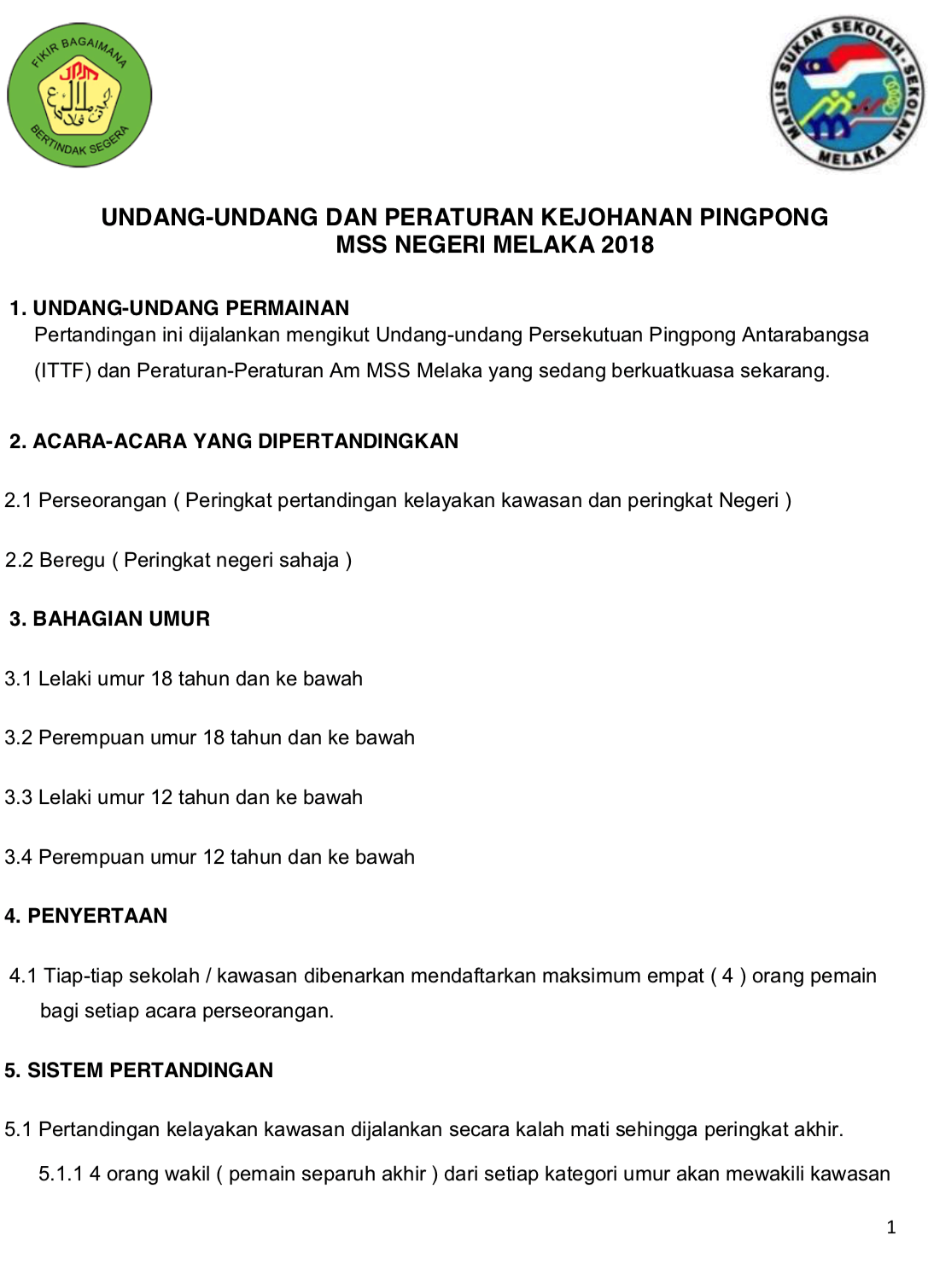 Pingpong Mssm Negeri Melaka 2018 Undang Undang Dan Peraturan Kejohanan Pingpong Mssm 2018