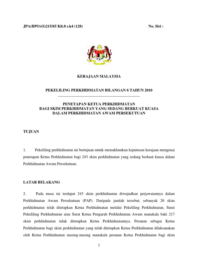 Pek Perkh Bil 6 Thn 2010 Pentapan Ketua Perkhidmatan