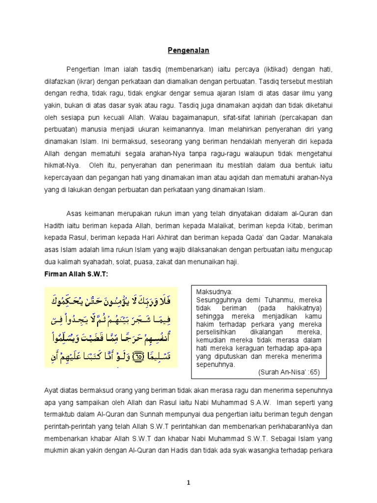 Doc Unit 2 Akidah Sinopsis Syamsul Rosli Academia Edu
