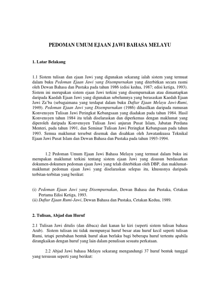 Pdf Pedoman Umum Ejaan Jawi Bahasa Melayu Green Green Academia Edu