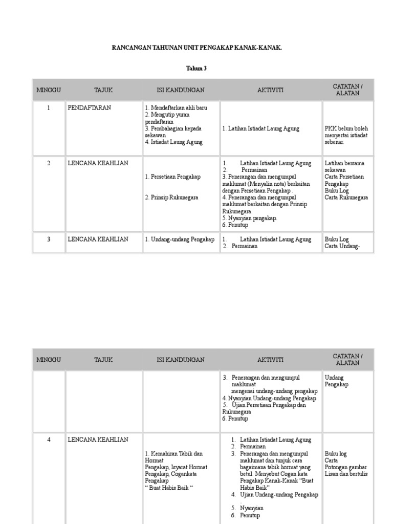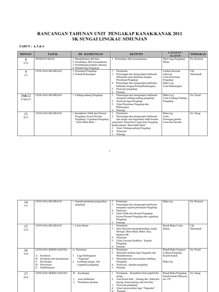 Rancangan Tahunan Unit Pengakap Kanak Kanak Tahun 5 Pdf