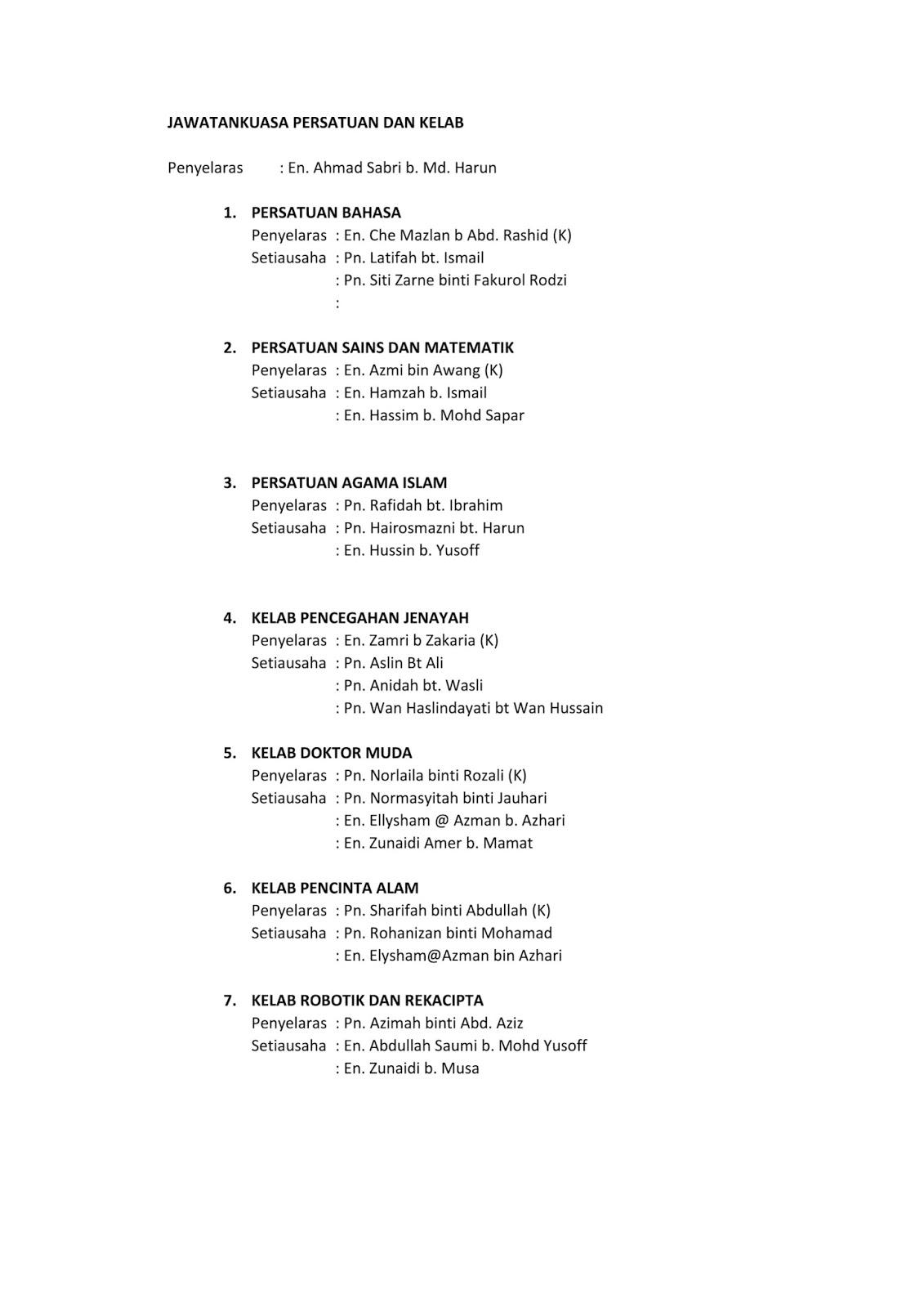 Senarai Guru Penasihat Kelab Dan Persatuan