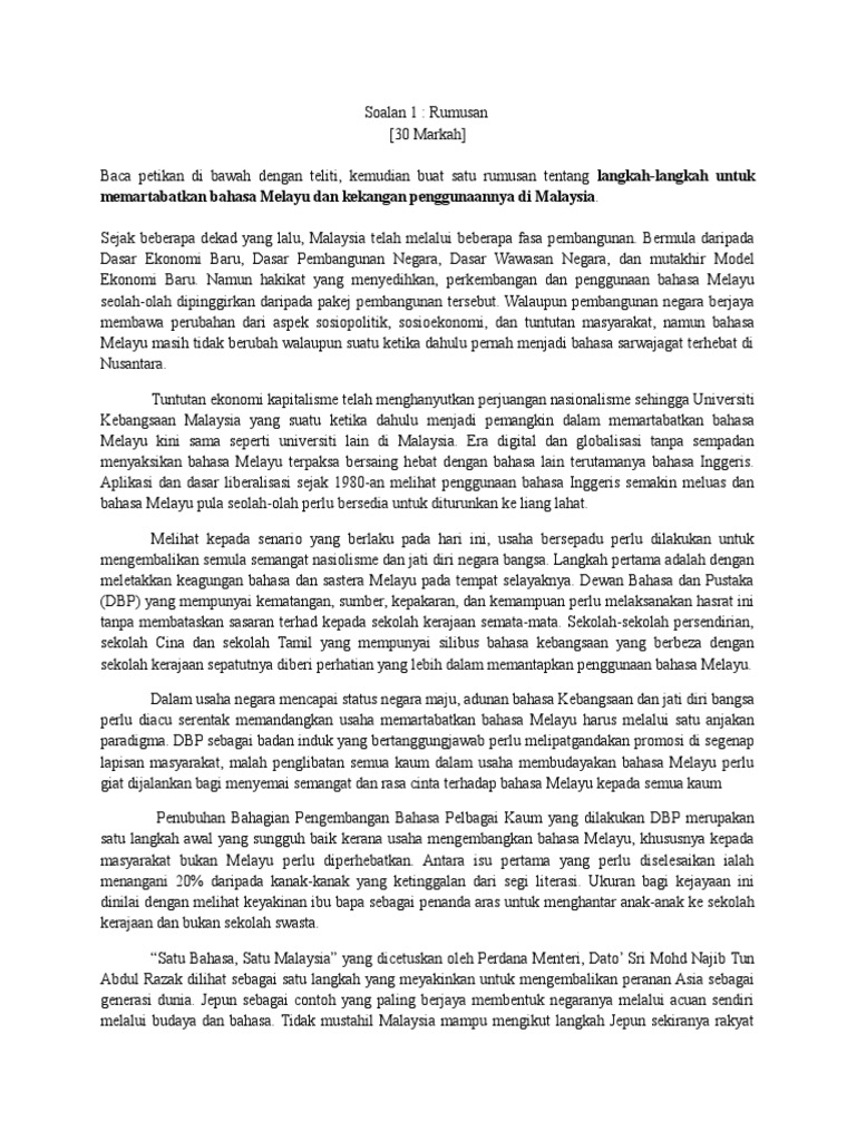 Sebab Sebab Bahasa Melayu Berada Dalam Dilema Dan Semakin Terpinggir Serta Cara Untuk Mendaulatkan Bahasa Melayu Docx Document