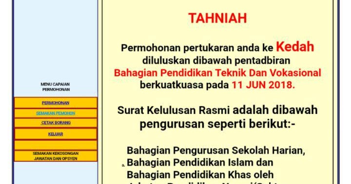 Semakan Keputusan Permohonan Kolej Vokasional Dan Sm Teknik 2018