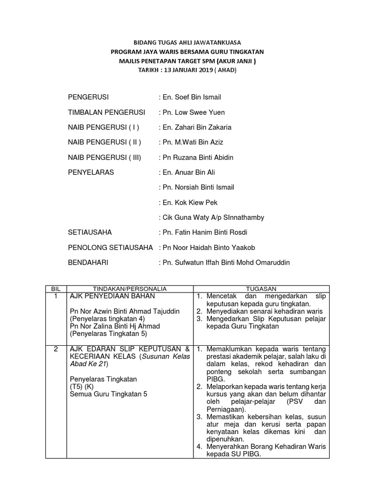 Senarai Ajk Bidang Tugas Hari Orientasi Dan Majlis Taklimat Ibu Bapa Penjaga Murid Tingkatan 1 2020 Pages 1 11 Text Version Anyflip