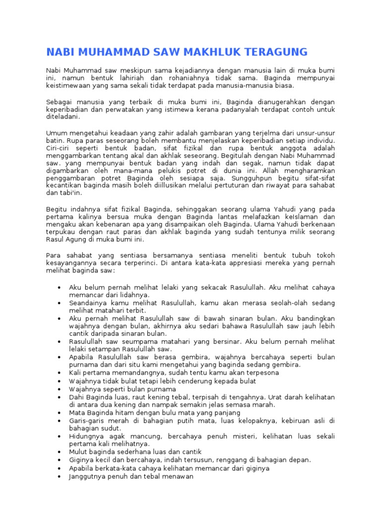 Nabi Muhammad Saw Makhluk Teragung