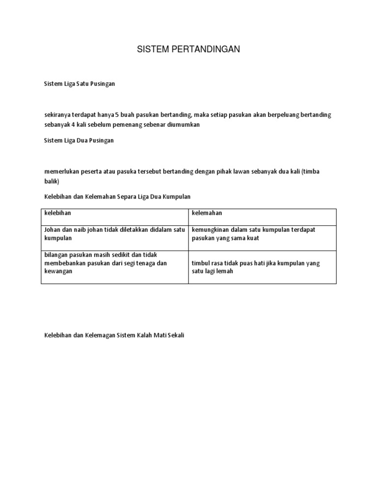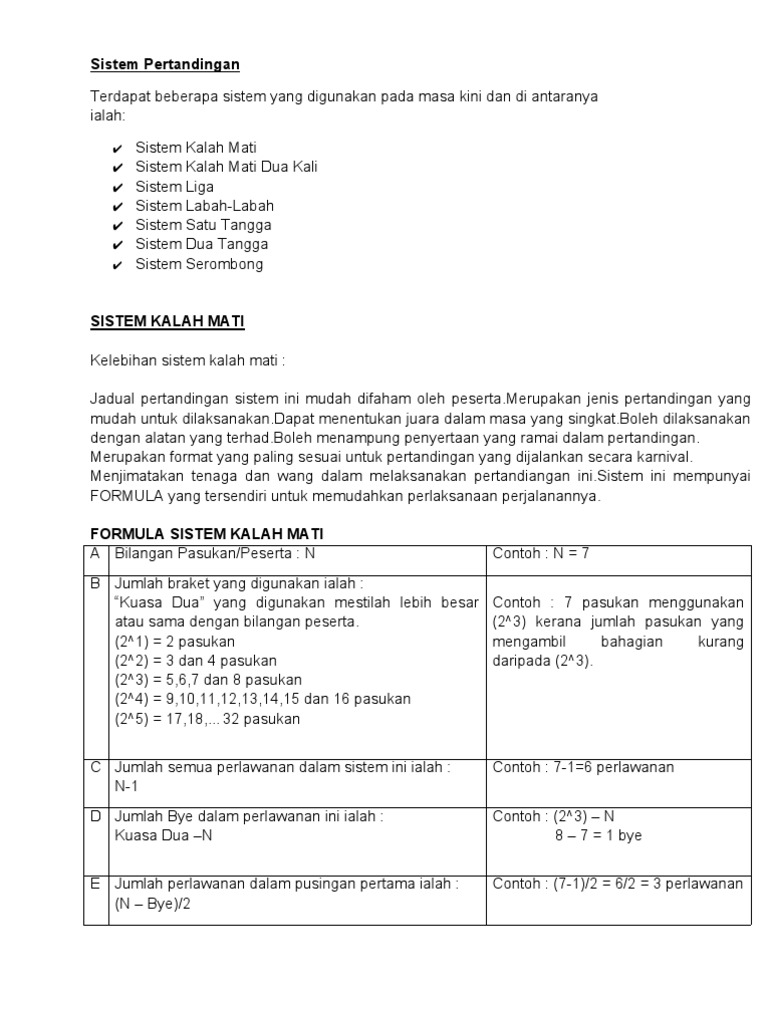 Pendidikan Jasmani Dan Sains Sukan Sistem Kalah Mati