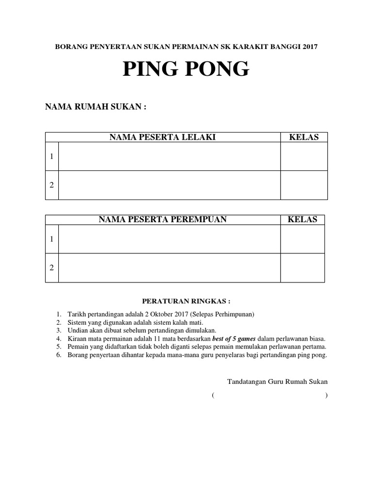 Borang Penyertaan Sukan Permainan Sk Karakit Banggi 2017
