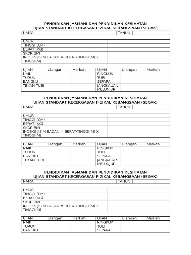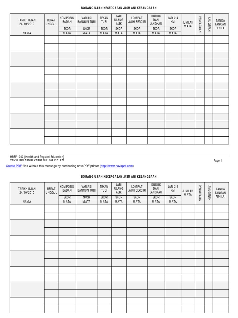 Borang Ujian Kecergasan Jasmani Kebangsaan 2