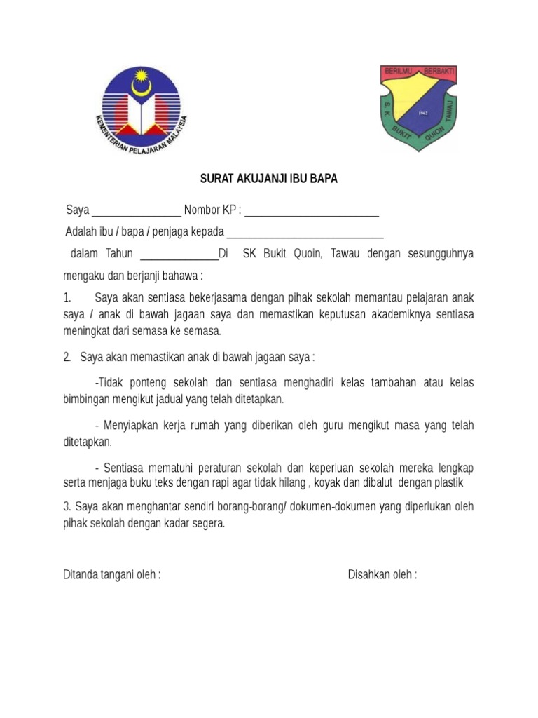 Surat Aku Janji Ibu Bapa