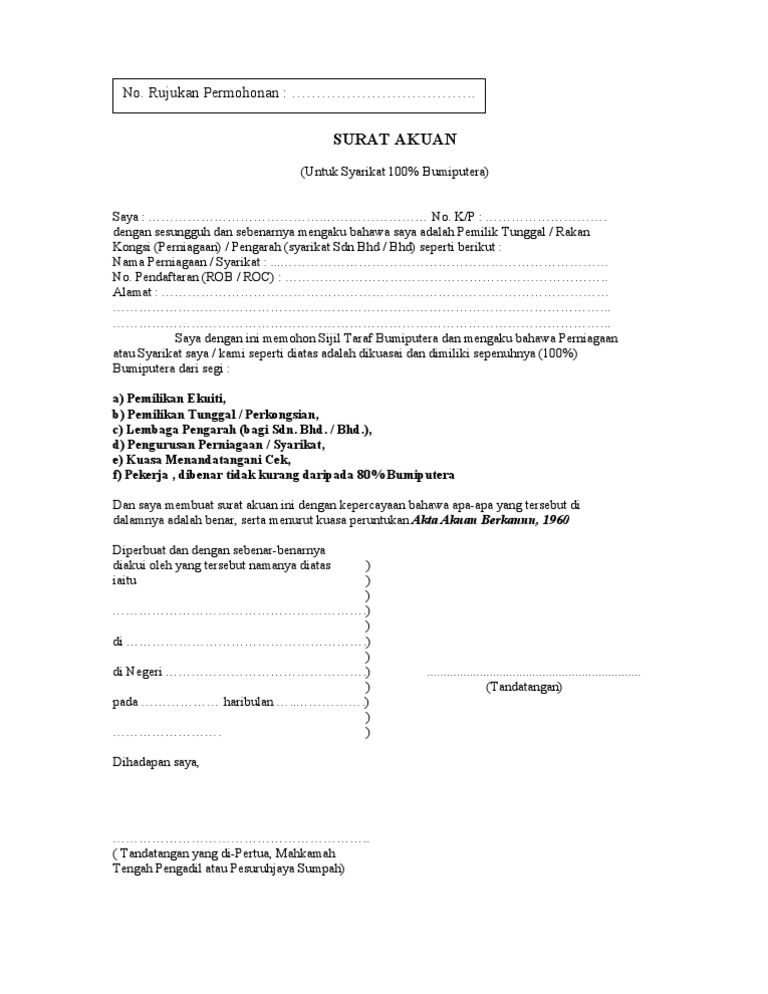 Surat Akuan Penaja Pdf Document