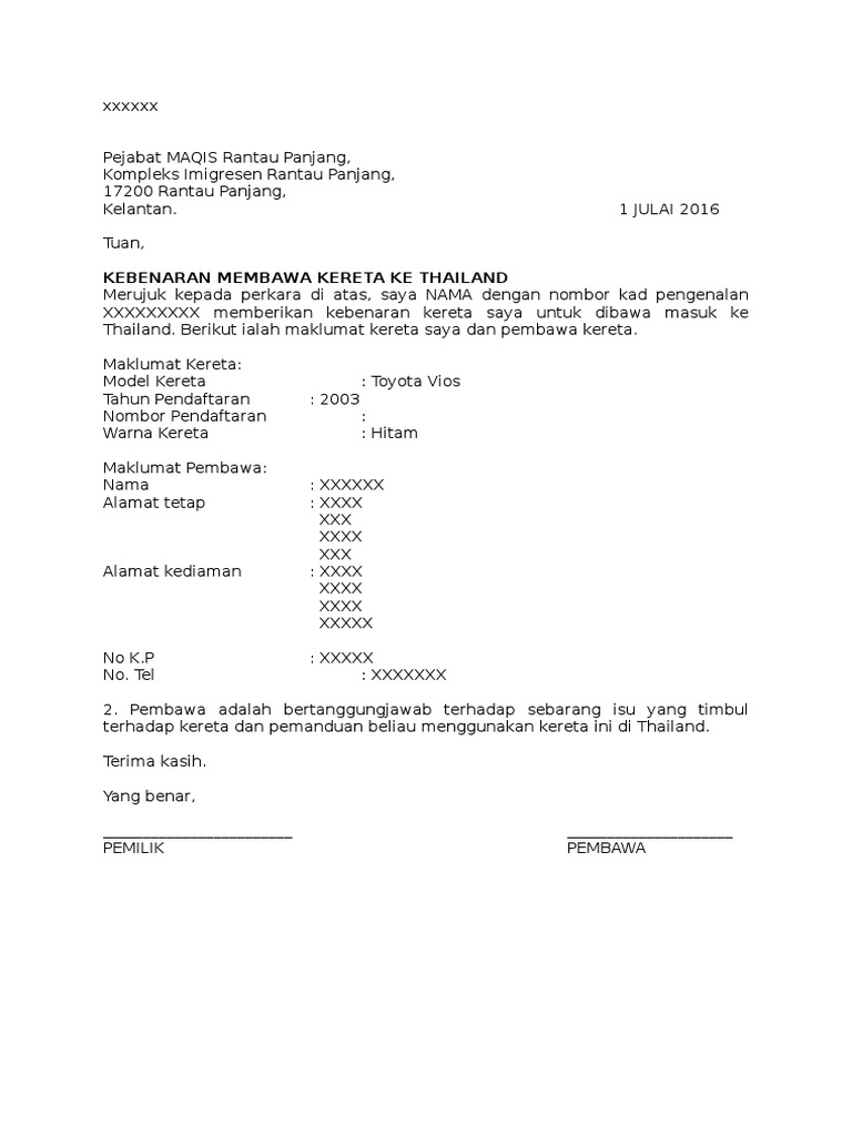 Surat Kebenaran Bawa Kenderaan Docx Document