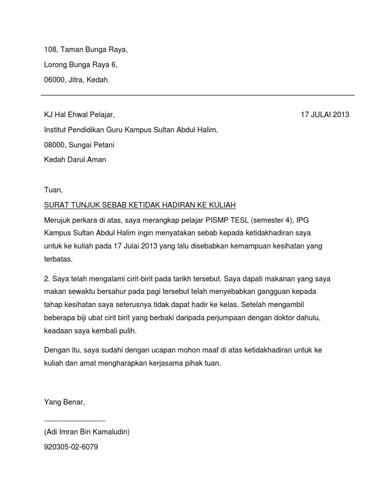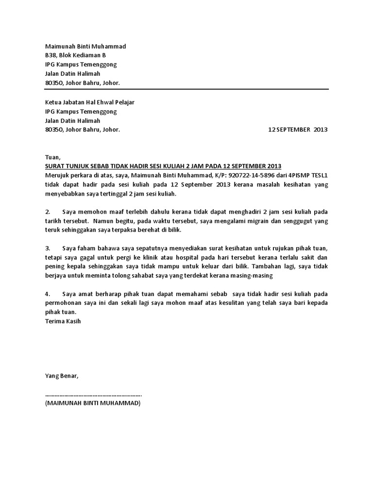 Contoh Surat Rasmi Tidak Hadir Ke Kuliah Universiti Resepi Ayam G