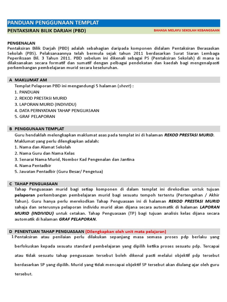 Templat Pelaporan Pentaksiran Bilik Darjah Pbd Untuk Sekolah Rendah Tahap 1 Tahun 1 2 3 Mycikgu Net