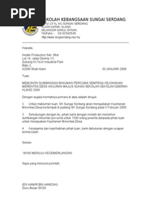 Contoh Surat Rasmi Memohon Sumbangan Wang Surat Rasmi 1