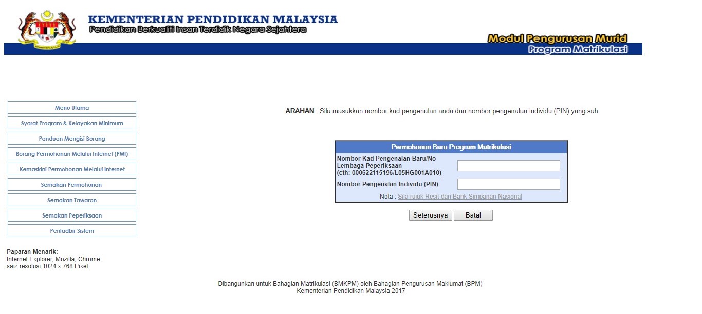 Semakan Status Permohonan Matrikulasi Kpm 2017 2018