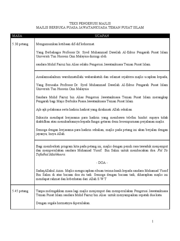 Teks Pengacara Majlis Berbuka Puasa