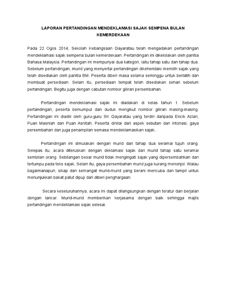 Laporan Pertandingan Mendeklamasi Sajak Sempena Bulan Kemerdekaan
