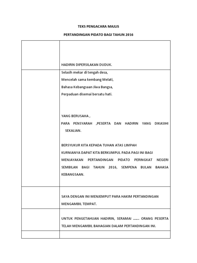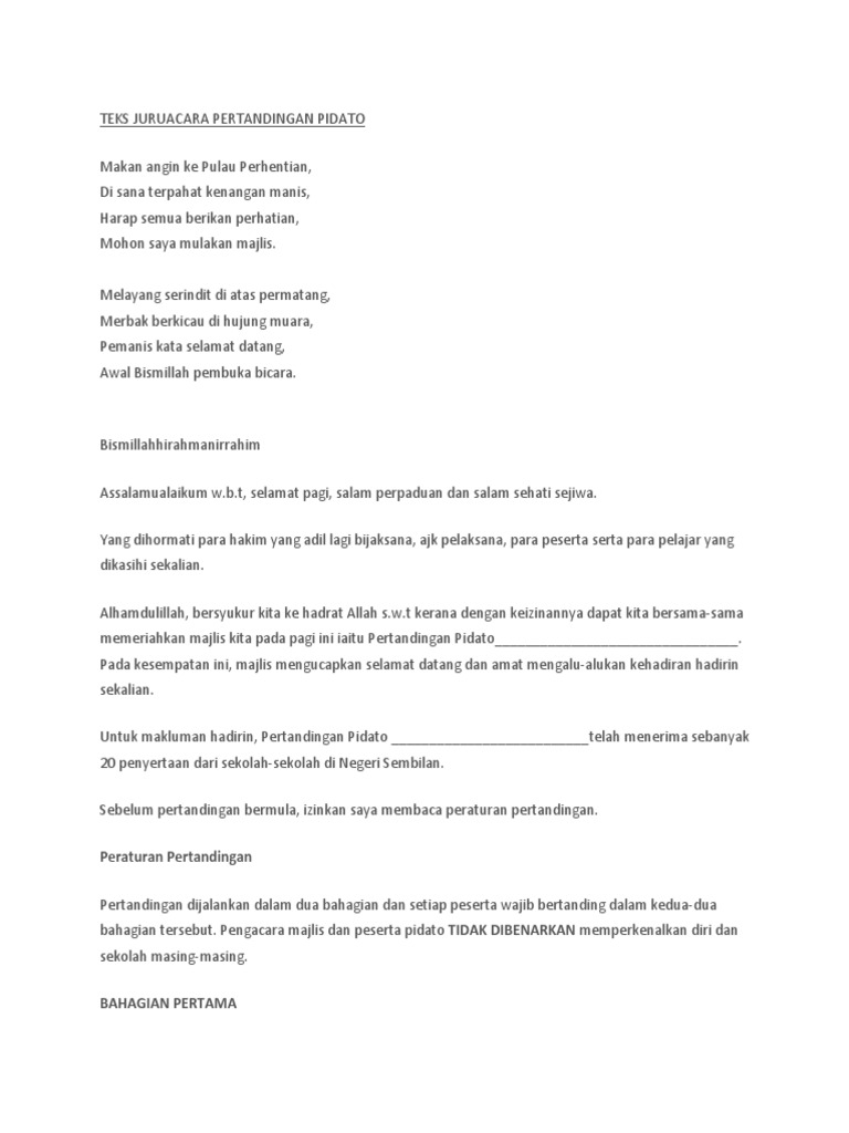 Teks Juruacara Pertandingan Pidato Docx