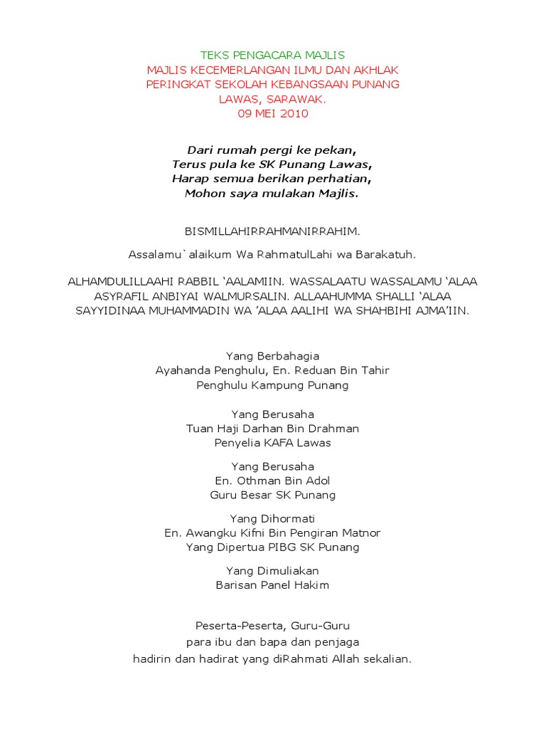 Teks Ucapan Pengacara Majlis