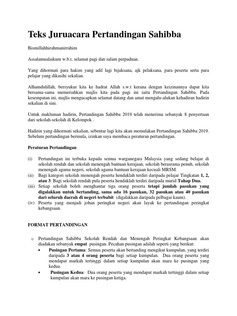 Teks Pengacara Majlis Pertandingan Mendeklamasi Sajak Docx Document