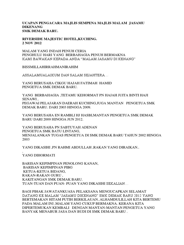Teks Pengacara Majlis Malam Jasamu Di Kenang Sk Jengka 1 Gb Hashim