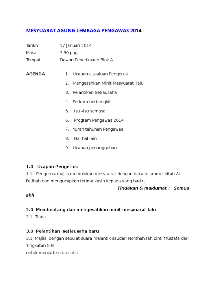 Doc Teks Mesyuarat Agung Pibg Hidayah Zaini Academia Edu
