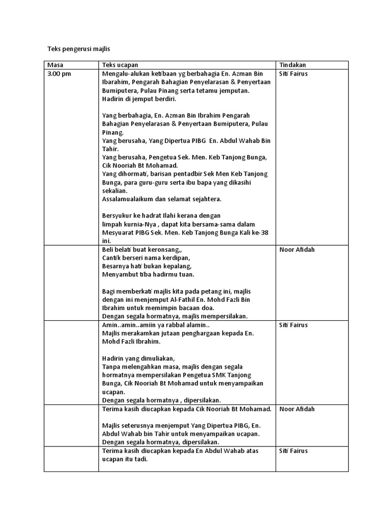 Teks Pengacara Mesyuarat Agung Pibg