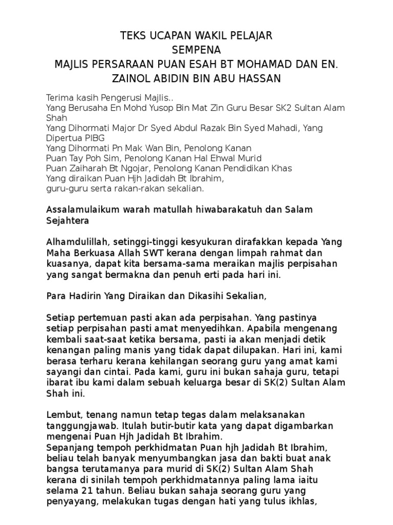 Doc Contoh Ucapan Wakil Murid Untuk Majlis Persaraan Sharina Sharina Academia Edu