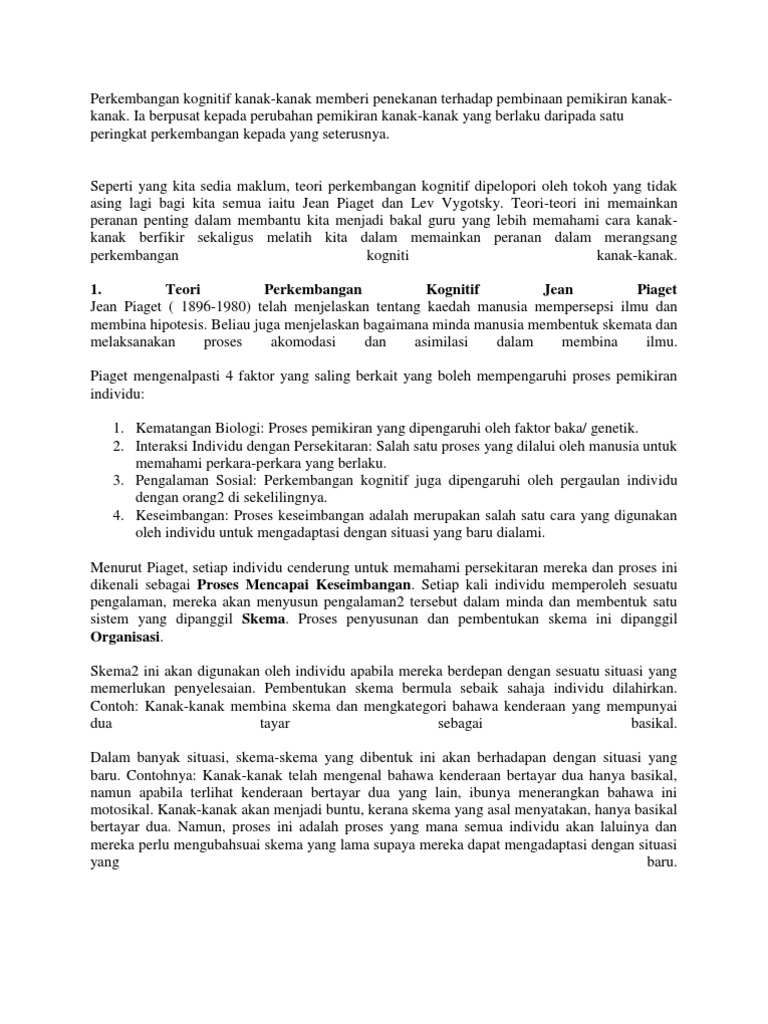 Doc Perkembangan Kanak Kanak Jean Piaget Vygotsky Putih Kertas Academia Edu