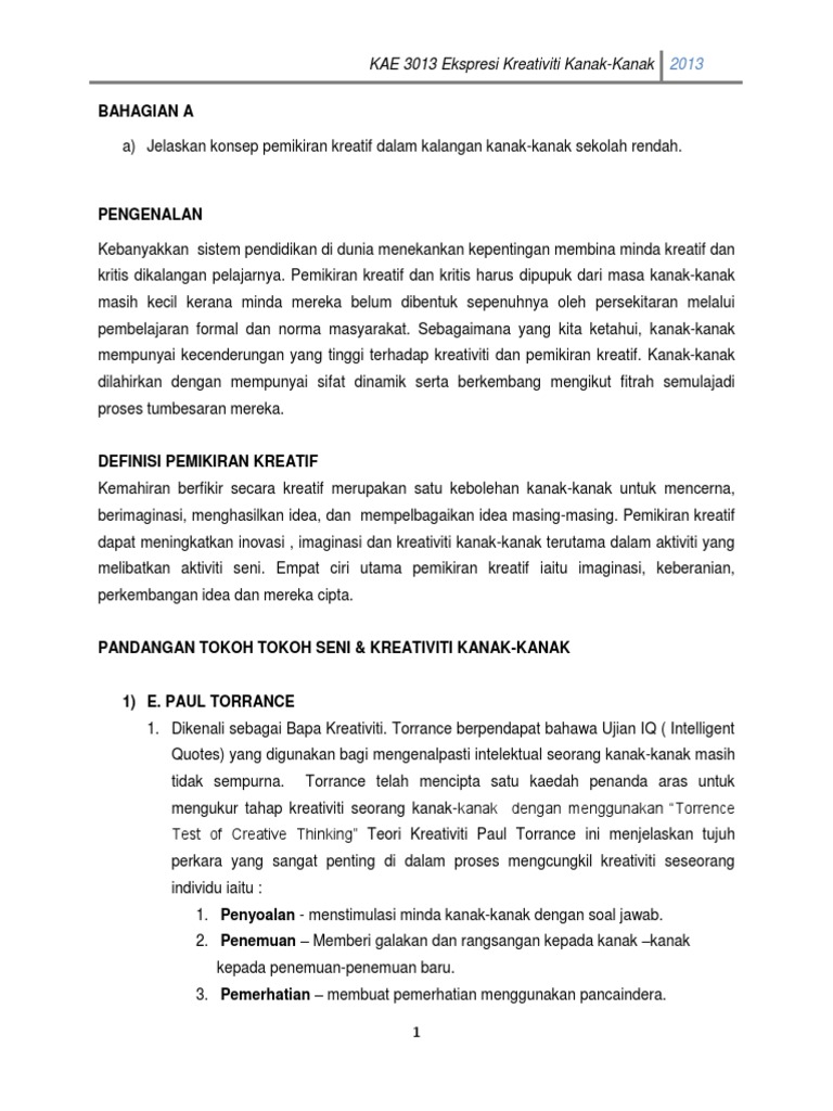 Doc Ekspresi Kreativiti Kanak Kanak Unit 1 6 Modul Upsi Pjj Unit 1 Teori Kreativiti Dan Pemikiran Kreatif Ting Ivy Academia Edu