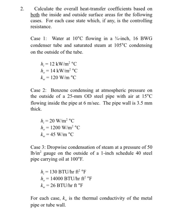 Solved 2 Calculate The Overall Heat Transfer Coefficient Chegg Com