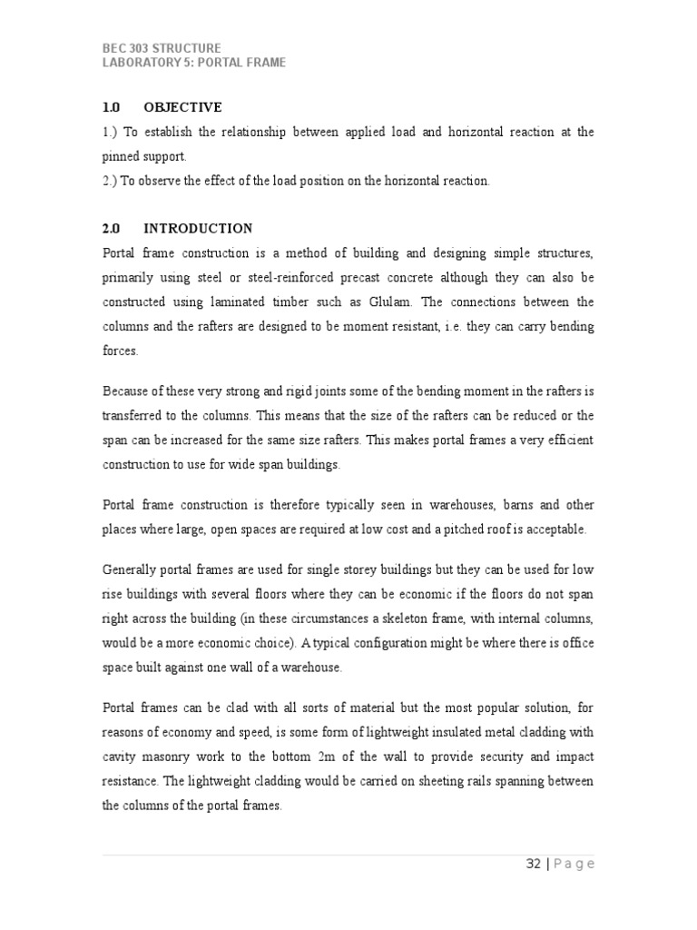 Lab Report Portal Frame Framing Construction Architectural Design