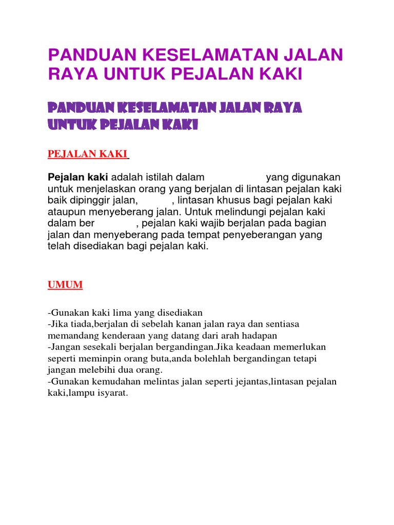 Langkah Langkah Keselamtan Pejalan Kaki Di Jalan Raya