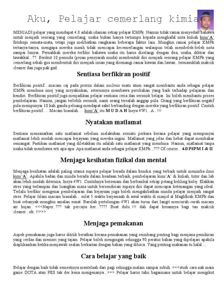 Aku Pelajar Cemerlang Kimia Sentiasa Berfikiran Positif
