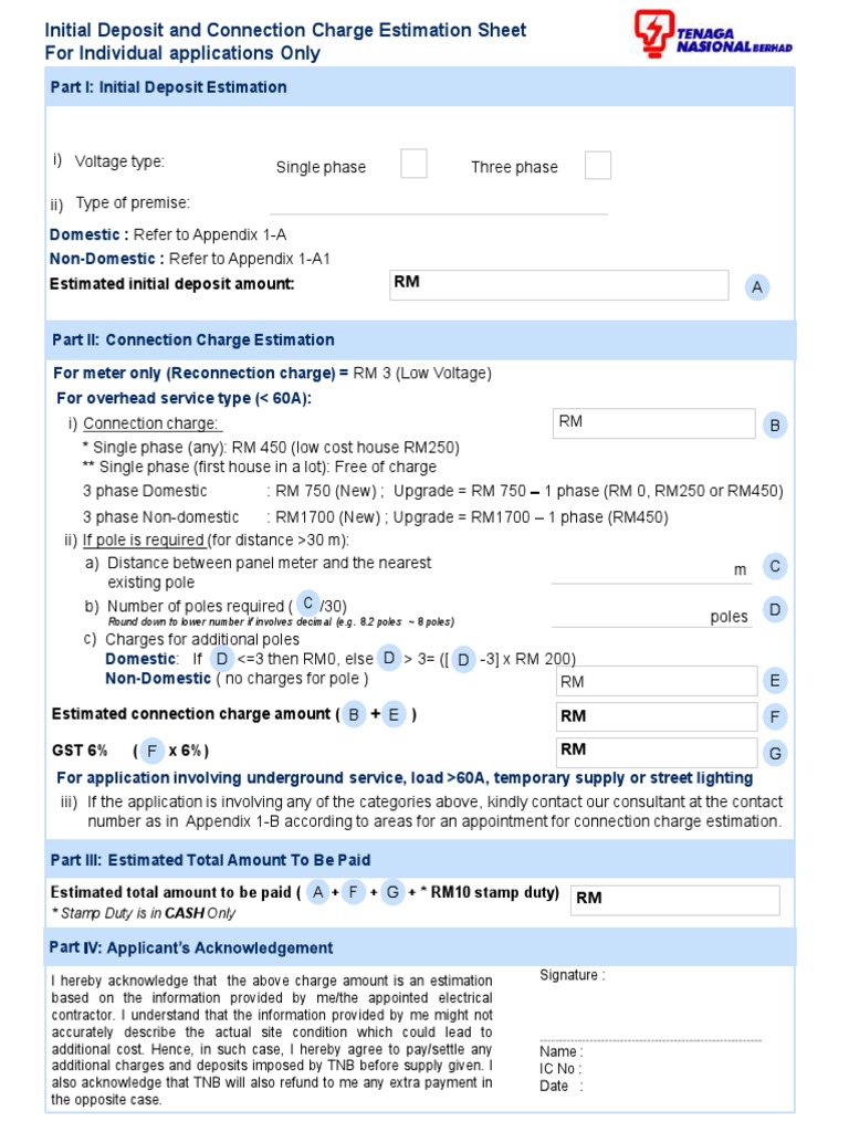 Connection Fee And Initial Deposit Estimation Sheet Pdf Business