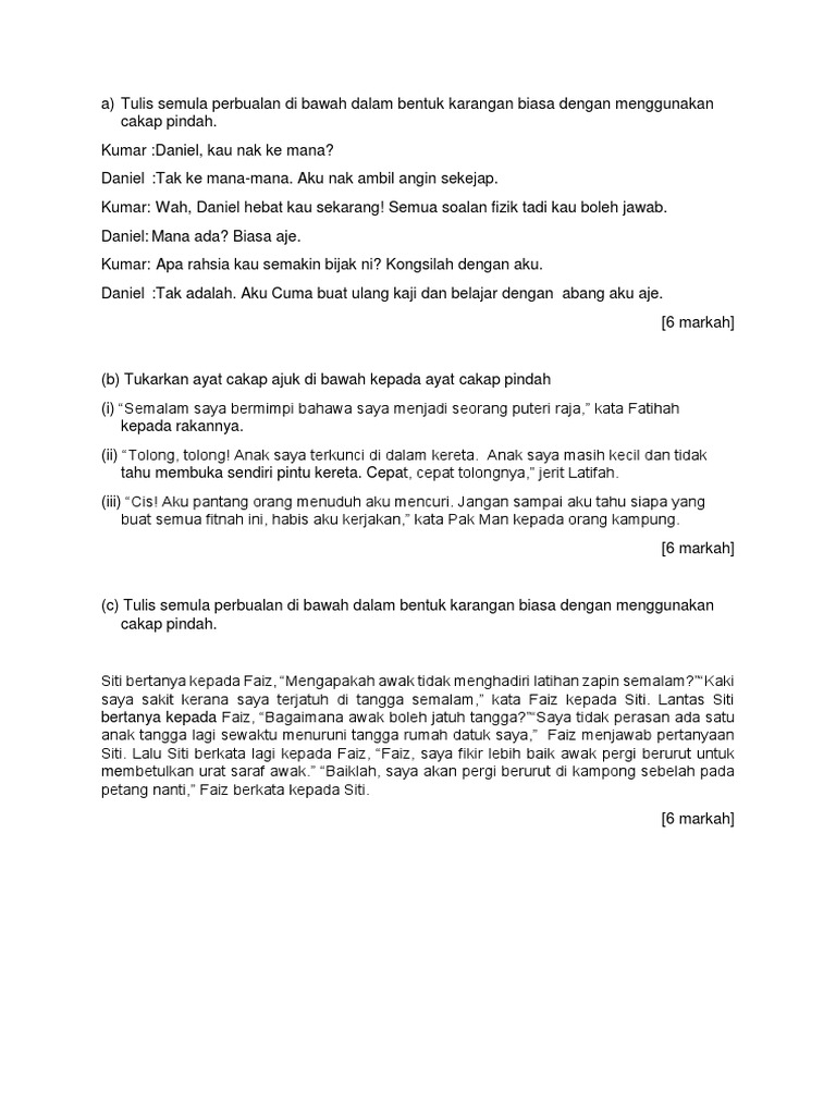Tukar Ayat Cakap Ajuk Kepada Cakap Pindah Tanpa Mengubah Maksudnya Docx