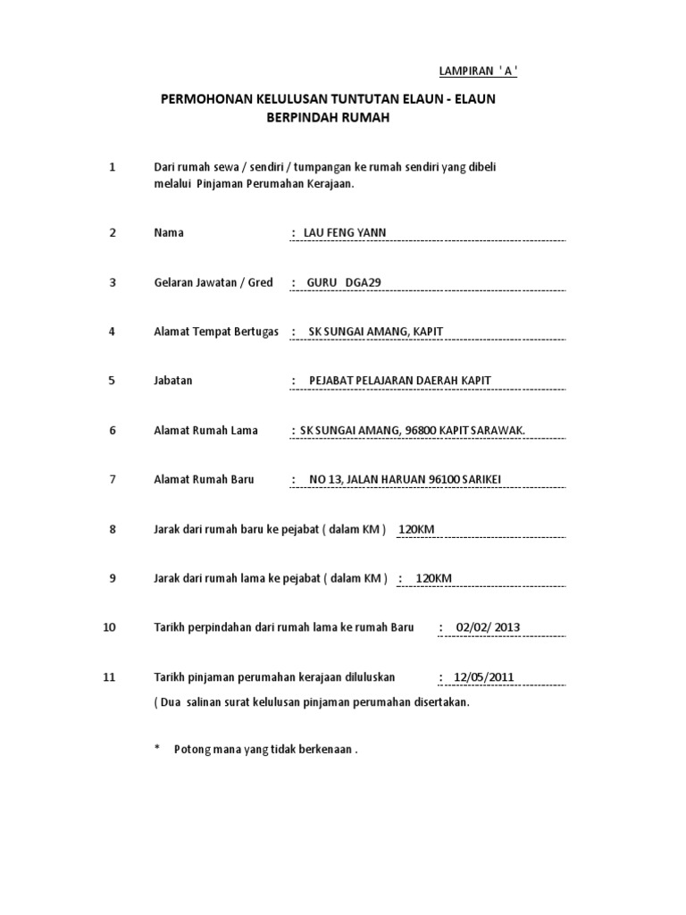 Contoh Surat Elaun Pindah Rumah Kerajaan