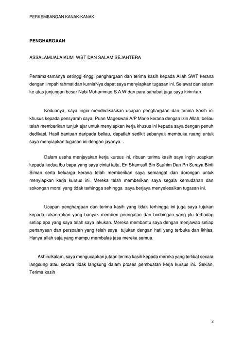 Ucapan Penghargaan Dan Terima Kasih Kepada Ibu Bapa