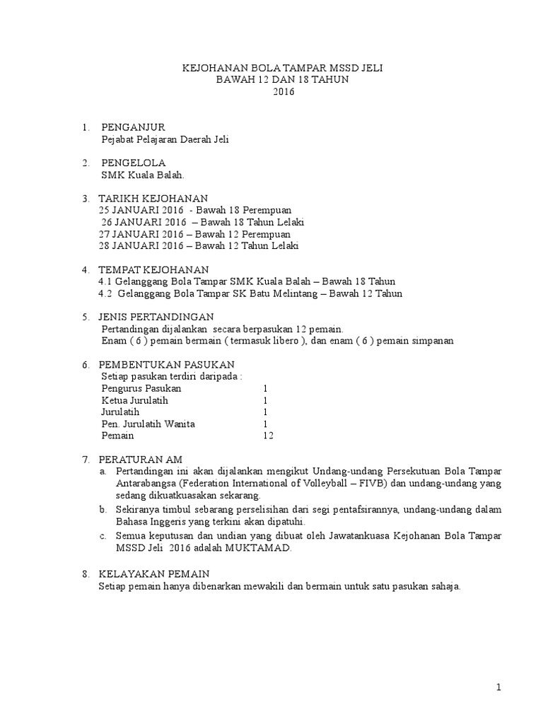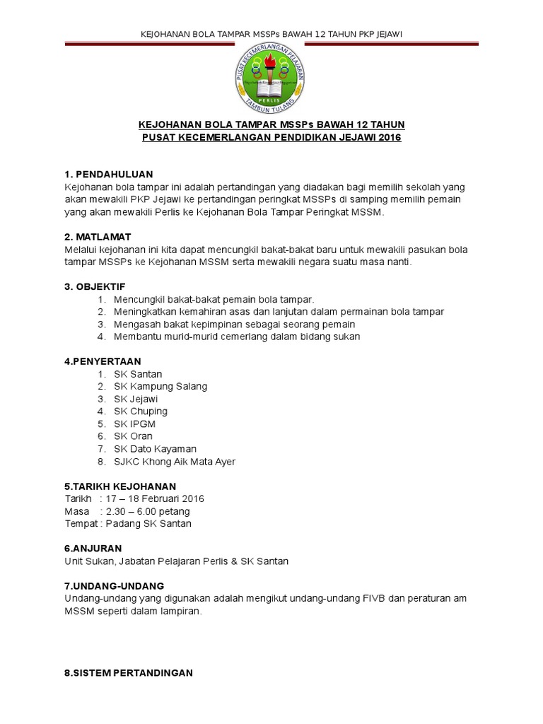 Kertas Kerja Kejohanan Bola Tampar Mssps Bawah 12 Tahun Jua 2016 Doc